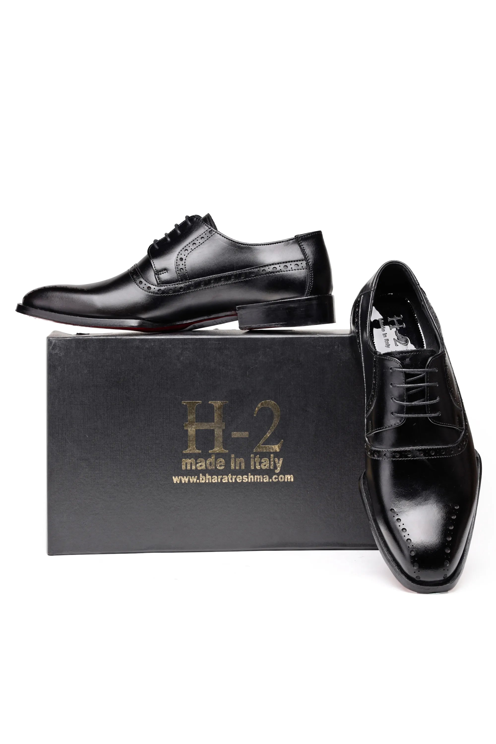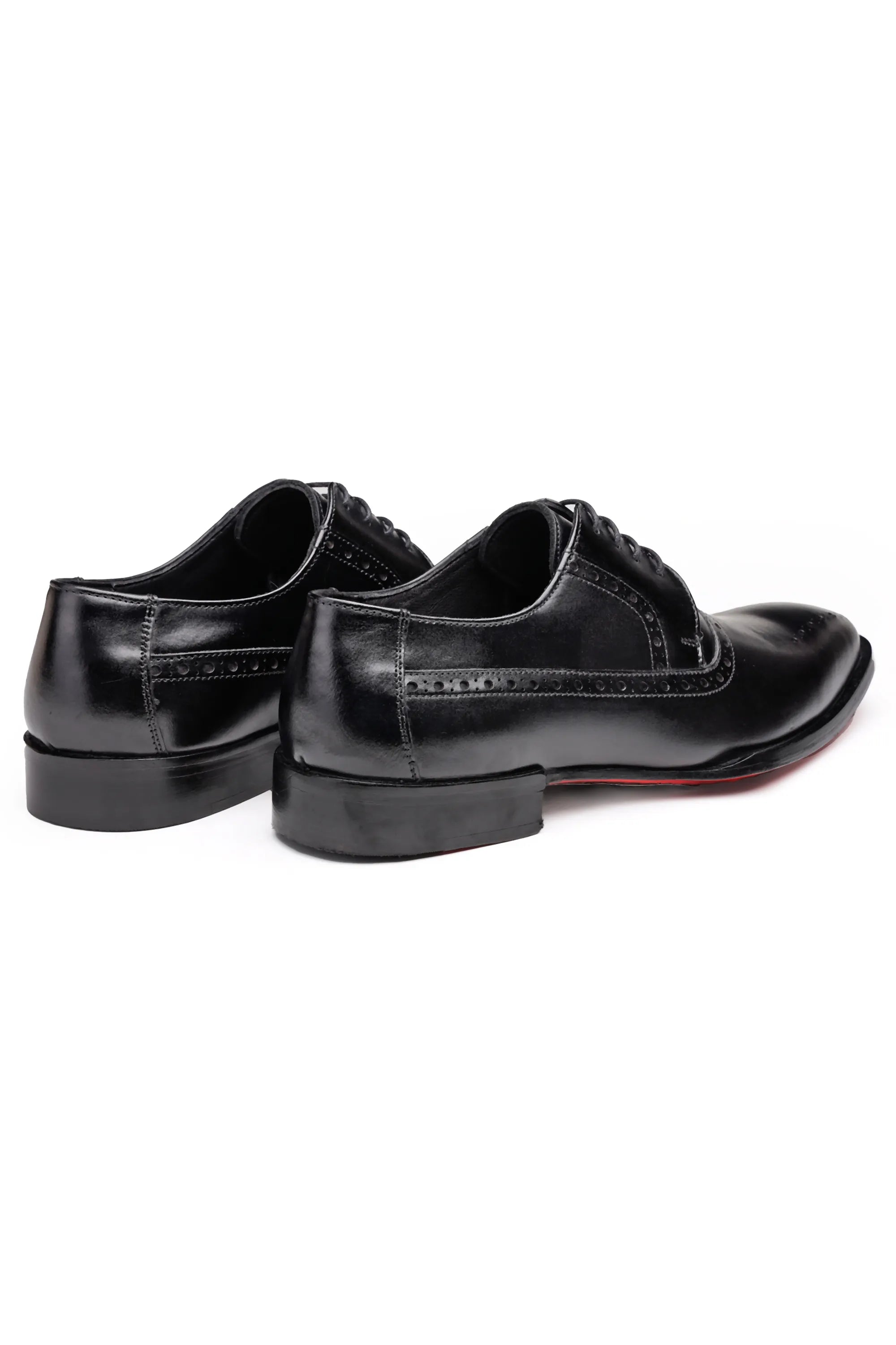 Elevate your formal look with these handcrafted Black Leather Brogue Derby. Made from genuine leather, they feature classic brogue perforations and a polished finish for a refined, timeless style.