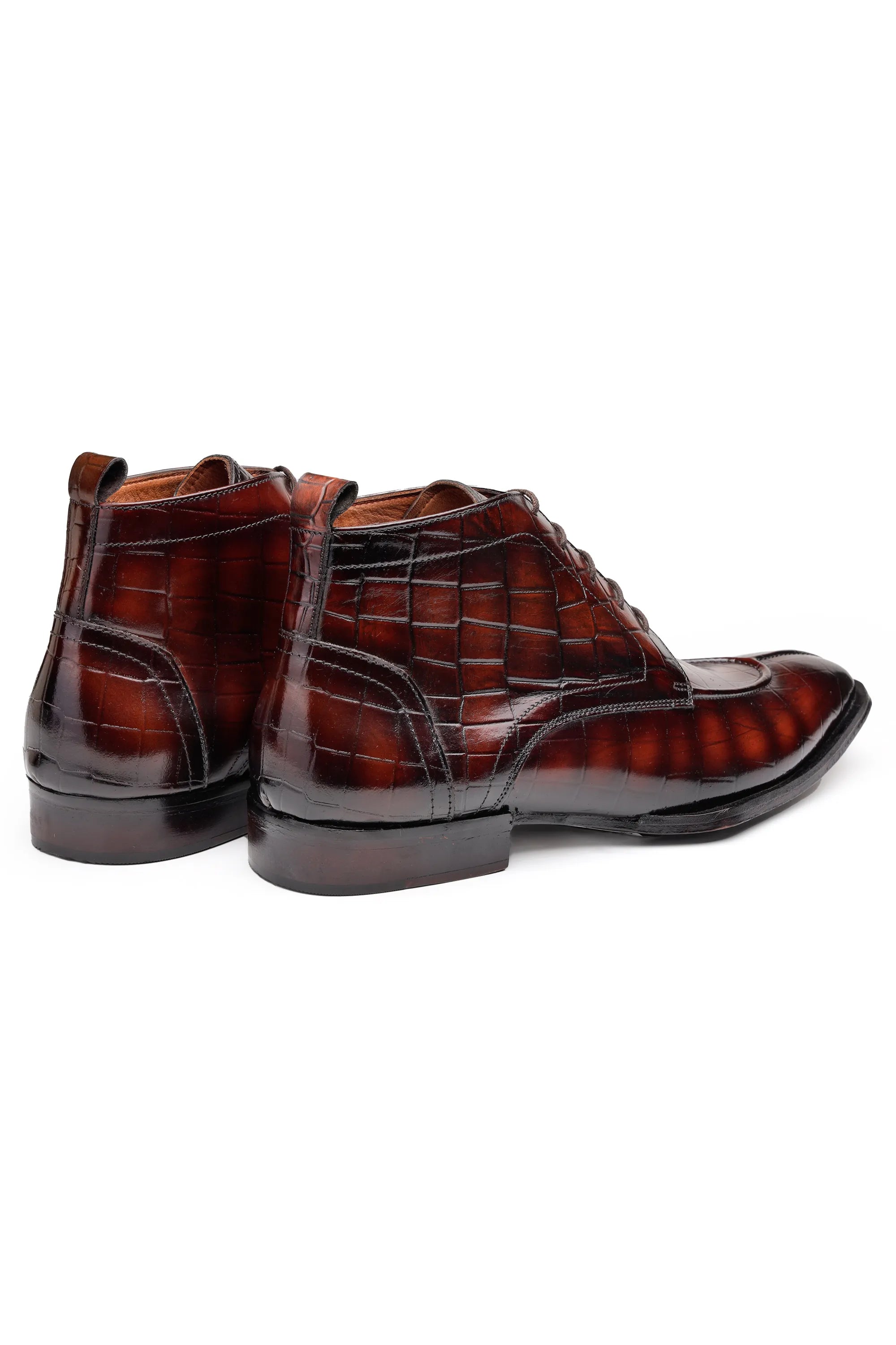 Croc-Pattern Leather Ankle Boots for Men