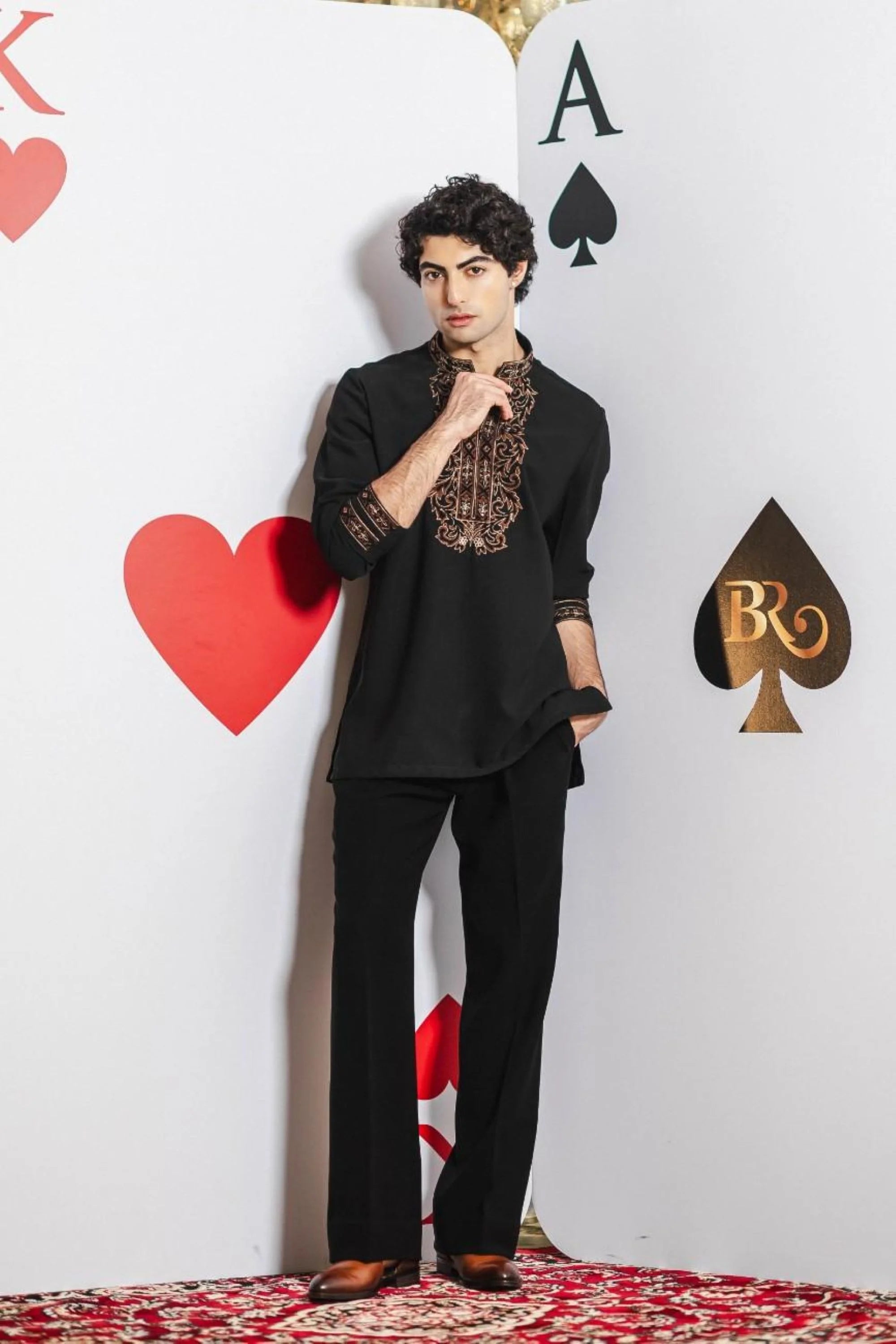 Earth Loom Black Kurta – Black with Aari Thread Embroidery