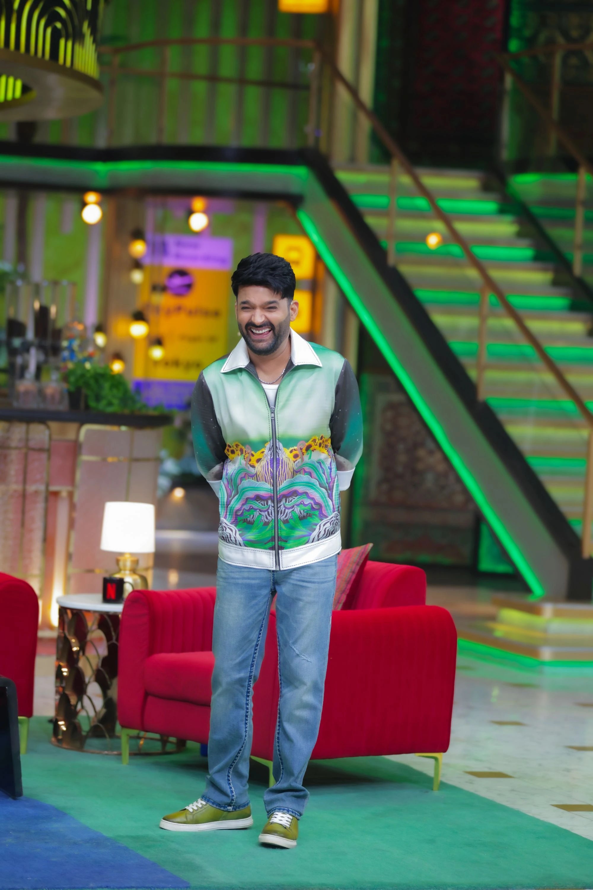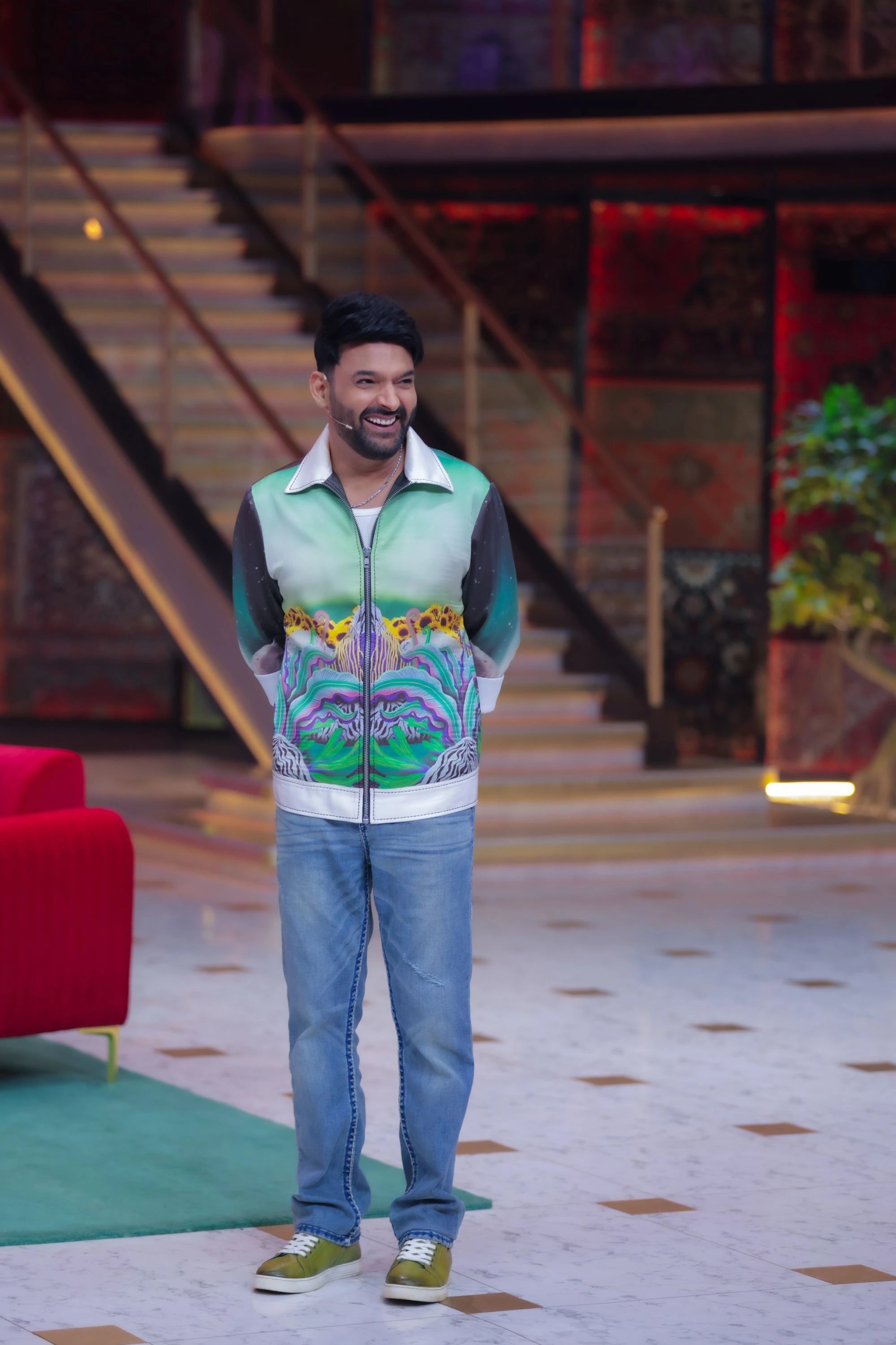 Exclusive Satin Digital Print Zip-Up Jacket Worn by Kapil Sharma