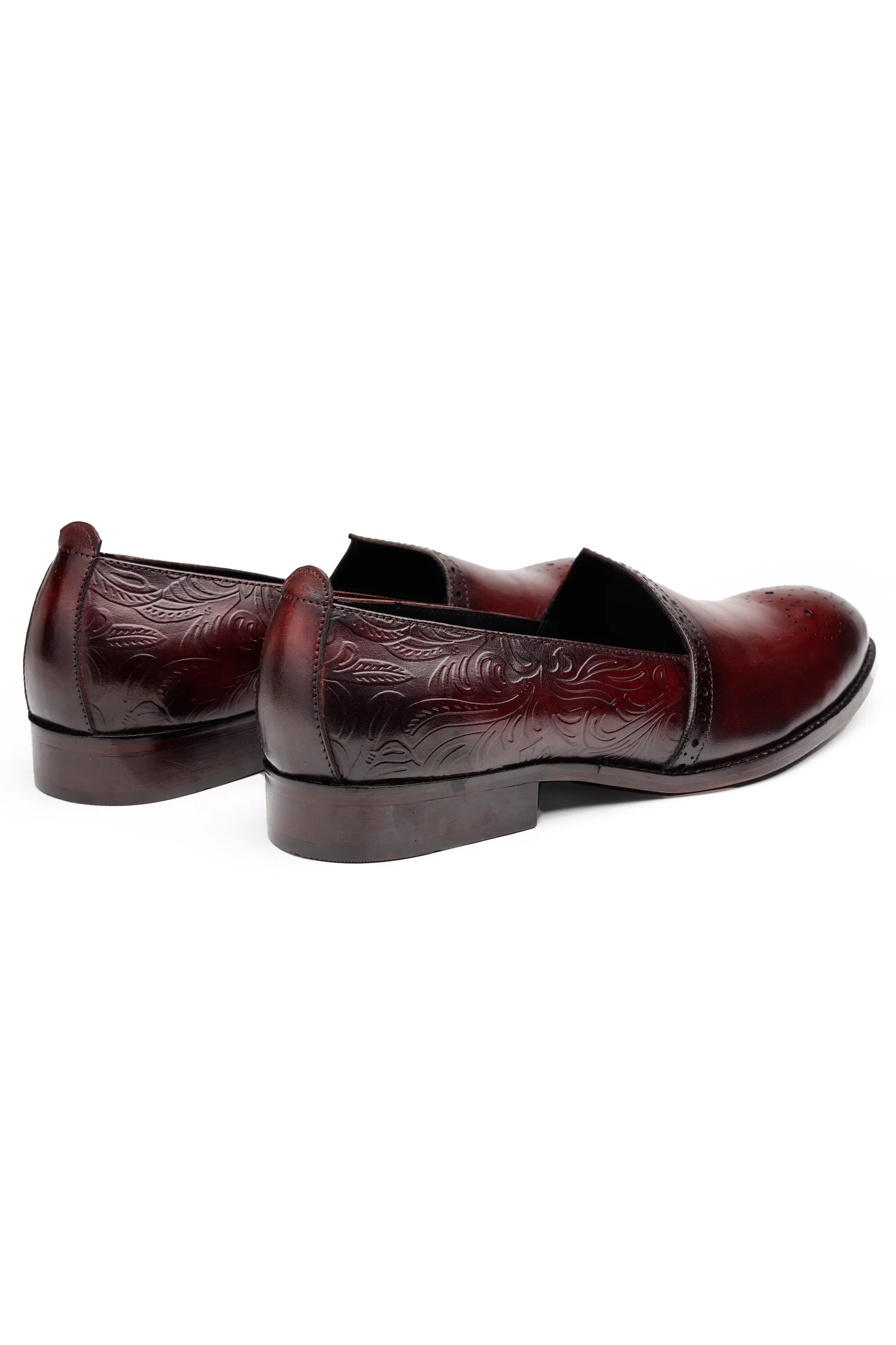 Leather Slip-On Loafers for Men with Elegant Brogue Detailing