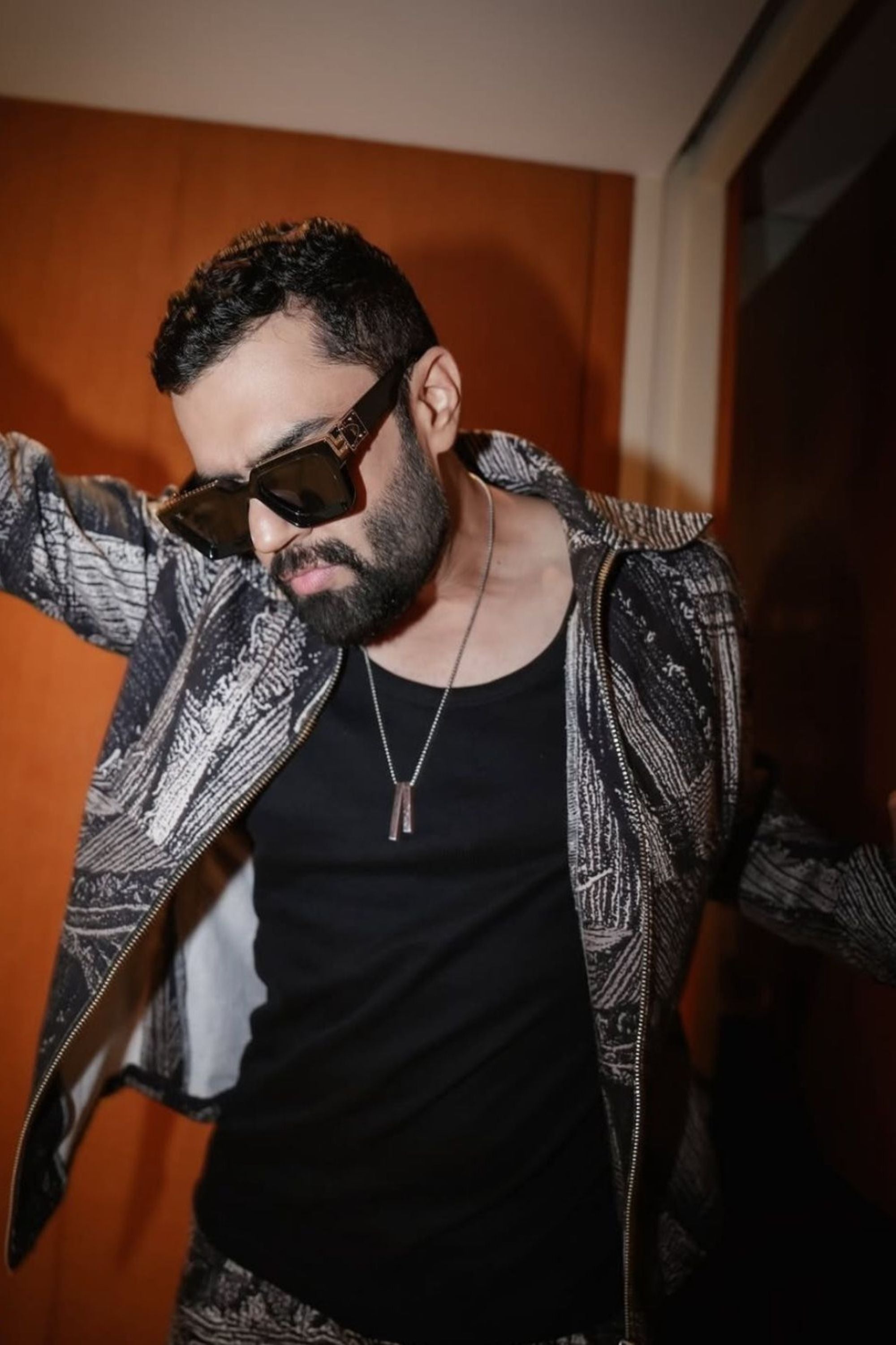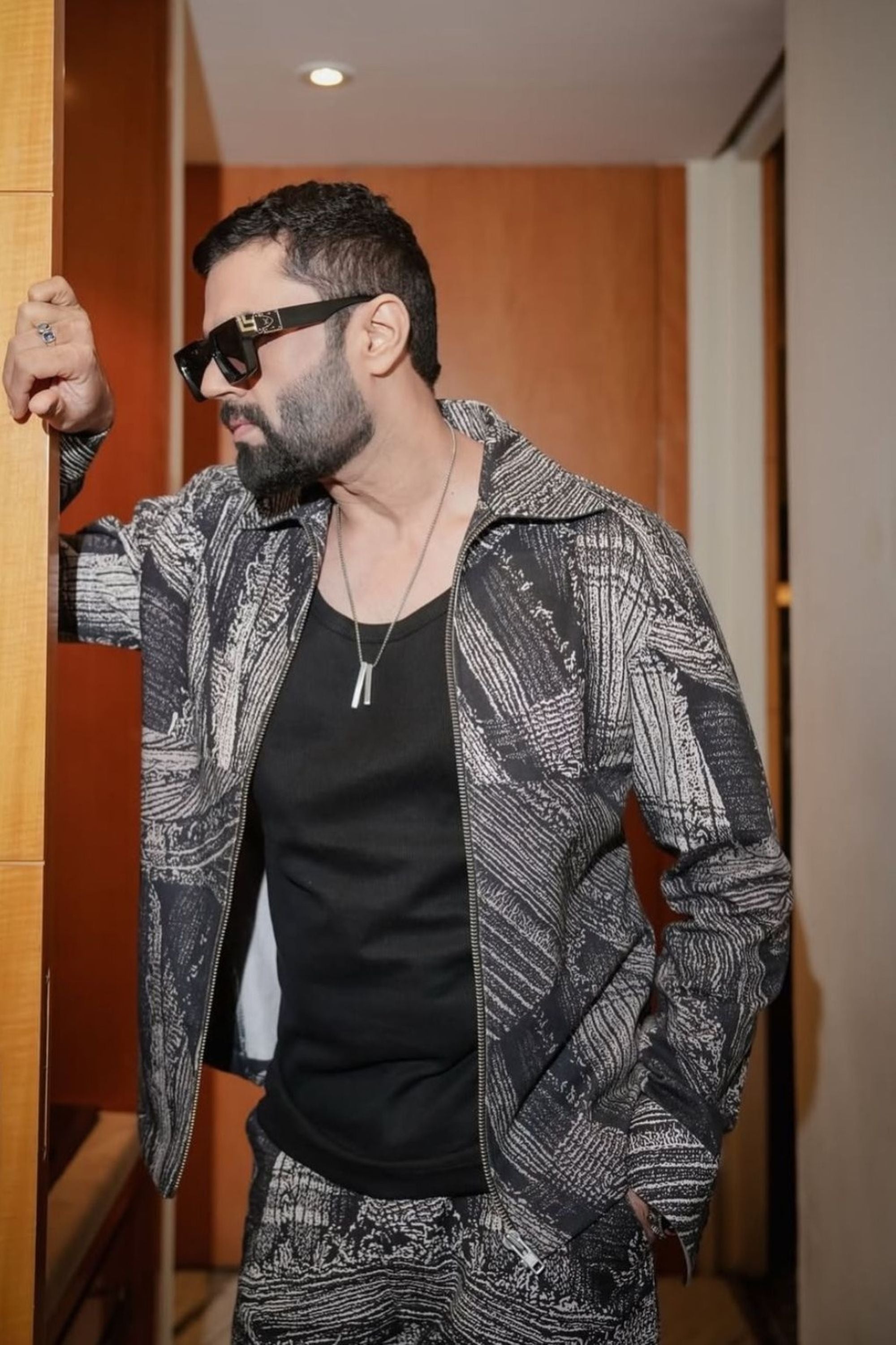 Manish Paul in Our Charcoal Abstract Digital Print Coord Set