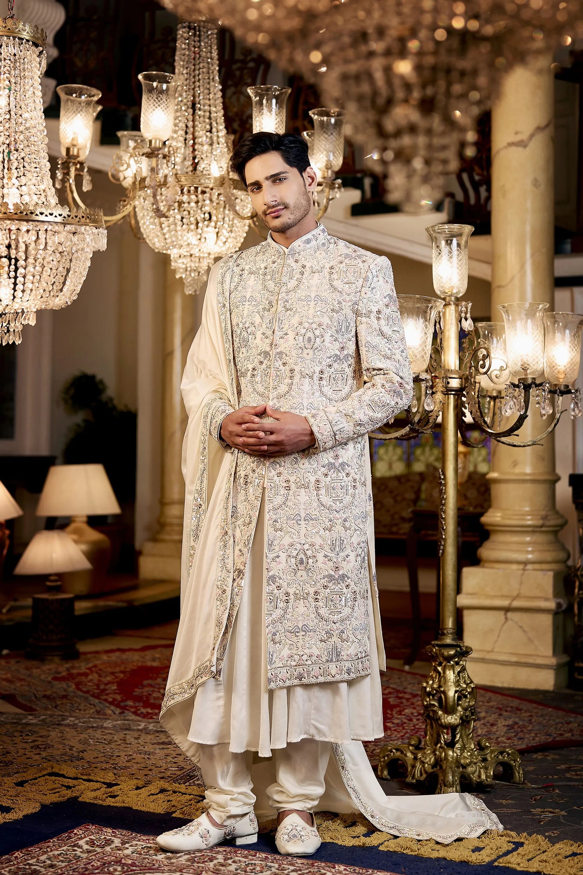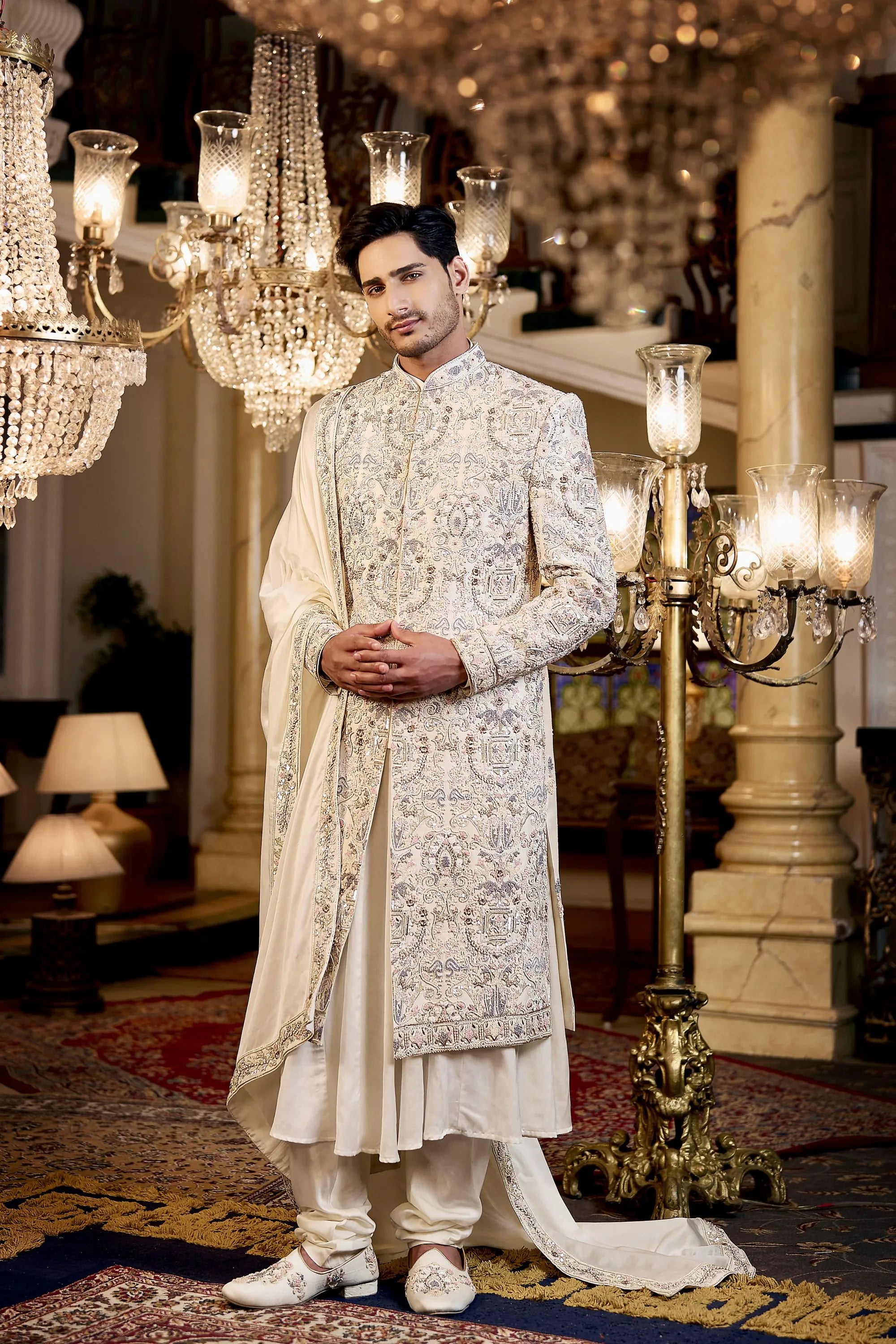 • Components : Sherwani, Kurta, pajami, Jutti, Stole, Pagri (SAFA) & Mala + Kalangi.