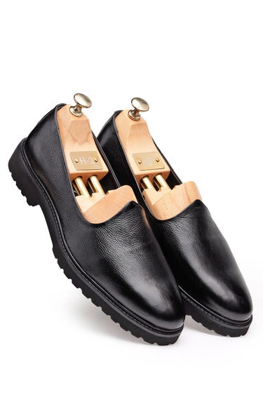 These premium slip-on loafers are made from 100% pure leather, offering a classy black finish and long-lasting comfort. Their easy slip-on design and durable sole make them ideal for office, business meetings, or formal events. The smooth texture and refined look add a stylish touch to any outfit while ensuring everyday comfort and durability.