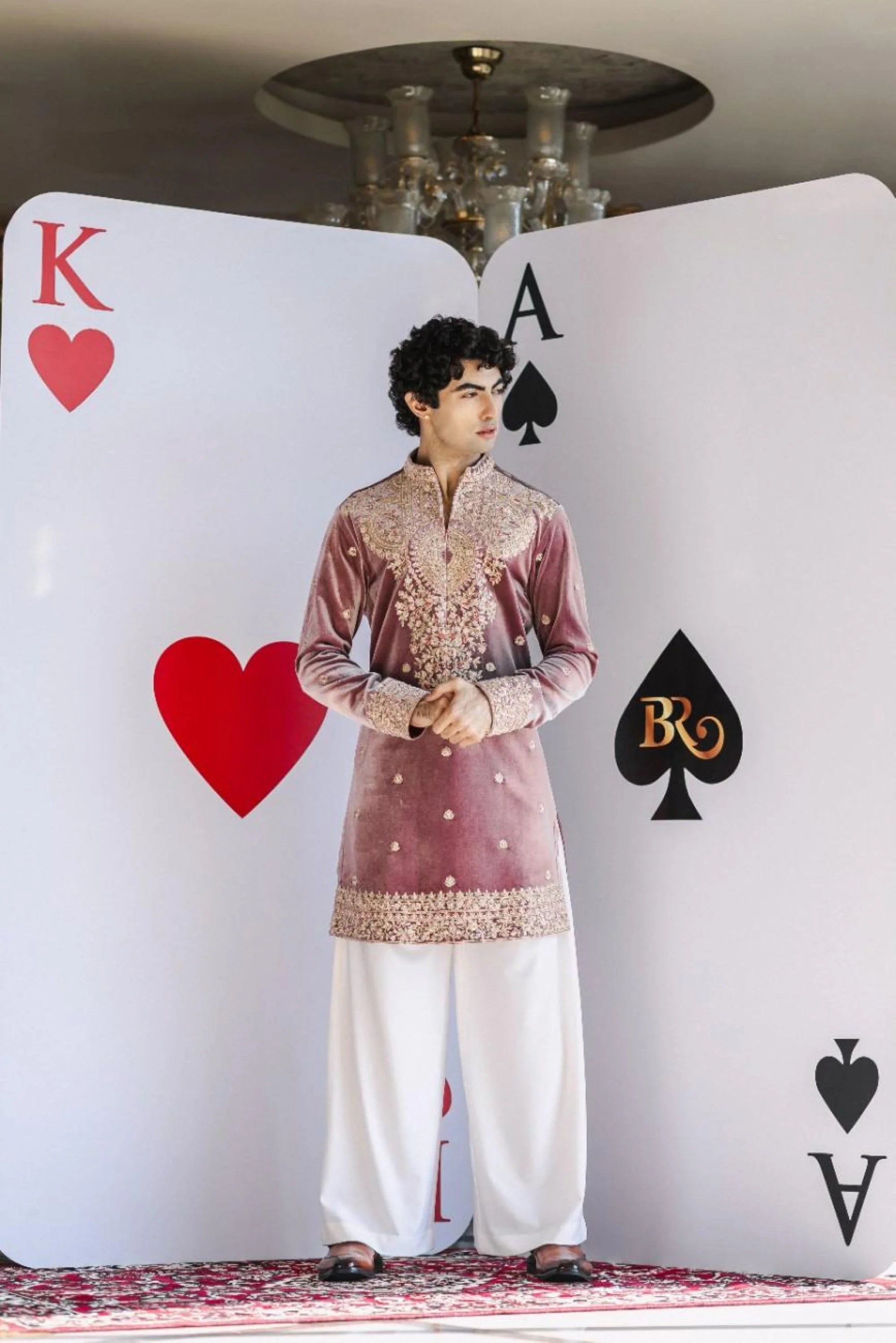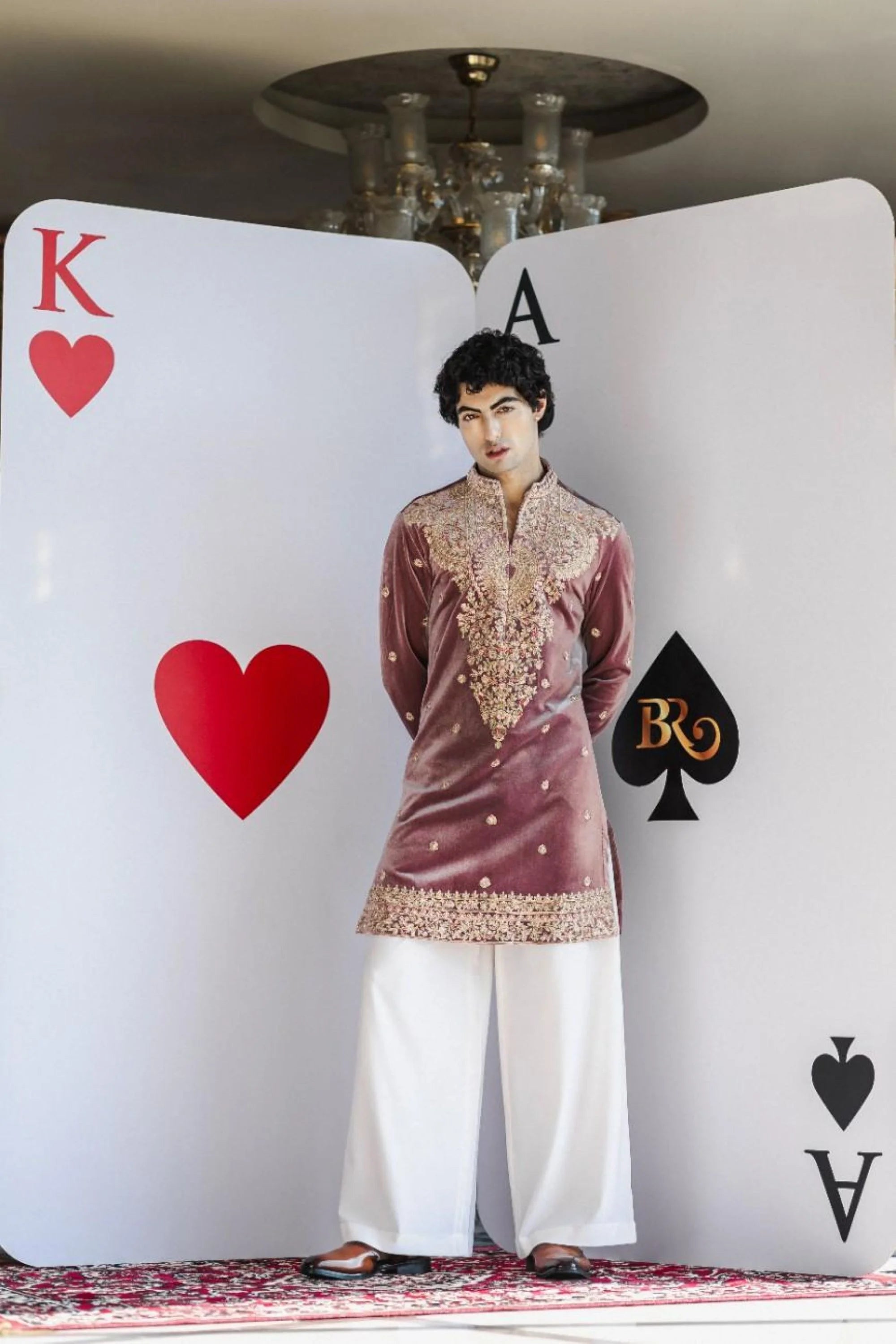 Step into regal elegance with the Royal Amethyst Kurta Set. Crafted in rich purple micro-velvet, this kurta is adorned with intricate golden embroidery that radiates luxury and charm. Paired with flowing white palazzo pants, it offers a graceful balance of comfort and grandeur. Perfect for weddings, festive occasions, and celebratory gatherings, this kurta set is a timeless addition to your ethnic wardrobe.