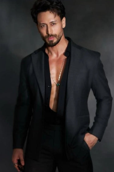 A classic grey 2-piece suit worn by Tiger Shroff, crafted from premium Italian fabric.