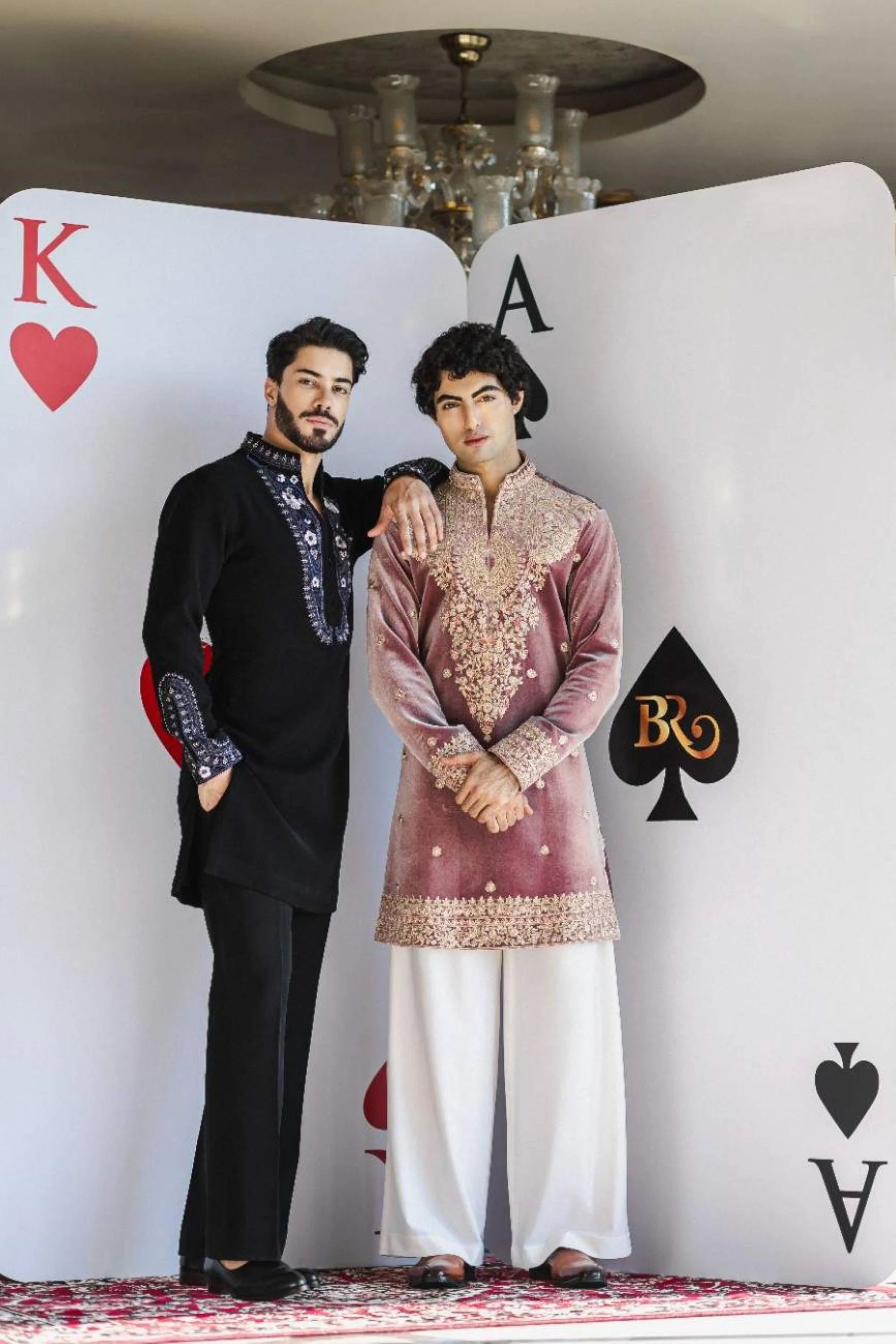 Make a bold festive statement with the Twilight Paisley Kurta Set. This elegant black kurta is highlighted with contrasting purple embroidery in a unique paisley design, crafted to stand out even in dim light. Paired with tonal pants, it creates a striking balance of tradition and modern style. Ideal for Diwali, weddings, and festive evenings, this kurta set ensures effortless sophistication.